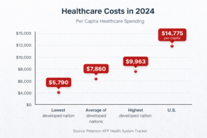 More confirmation of America’s excessive spending on healthcare A short blog today to update you on healthcare spending around the developed world based on a new Peterson-KFF Health System Tracker chart collection recently published. I have covered this topic of spending and quality in the past many times. What did Peterson-KFF find last time on costs? In the earlier analysis, Peterson-KFF found the following: What did Peterson-KFF find last time on quality? Peterson-KFF finds that the U.S. performs worse in long-term health outcomes measures (e.g., life expectancy), certain treatment outcomes (e.g., maternal mortality and congestive heart failure admissions), some patient safety measures, and health system capacity. On the other hand, the U.S. performs similarly to or better than peer nations in other measures of treatment outcomes (e.g., mortality rates within 30 days of hospital admission) and some patient safety measures (e.g., post-operative complications). In essence, if you have good access